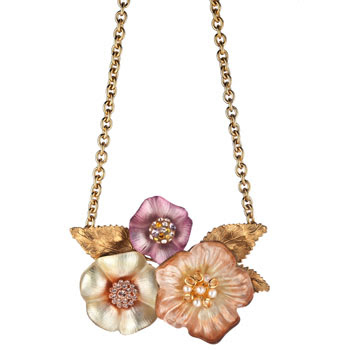 Alexis Bittar is one of my favorite costume jewelry designers and was recently named by the CFDA as Accessories Designer of the Year for 2010. His work is amazing and totally unique, I love his play with color, texture and nature. I swear I have a pair of vintage Bittar pink flower earrings very similar to the pin above in my current collection, I'm just waiting for a fan of his to recognize them and scoop 'em up!